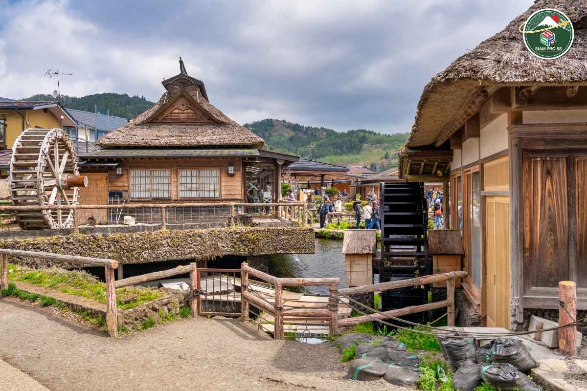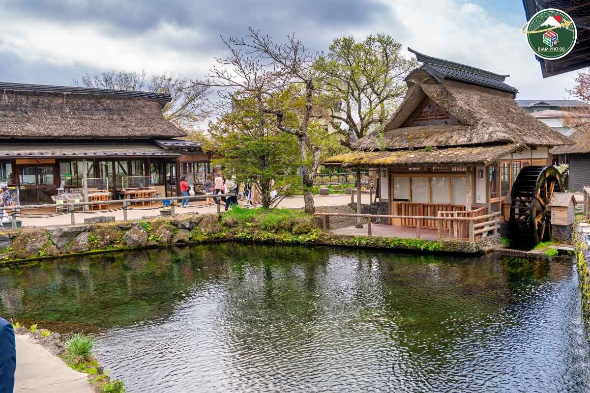 ทางเดินเป็นบ้านไม้สไตล์ชนบท เก๋งญี่ปุ่น ร้านขายของพื้นเมือง และสะพานไม้น่ารักๆ ที่มองเห็นน้ำใสไหลผ่านหมู่บ้าน