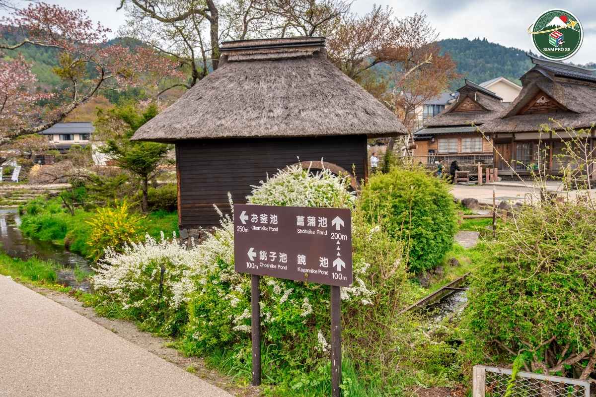ทางเดินเป็นบ้านไม้สไตล์ชนบท เก๋งญี่ปุ่น ร้านขายของพื้นเมือง และสะพานไม้น่ารักๆ ที่มองเห็นน้ำใสไหลผ่านหมู่บ้าน