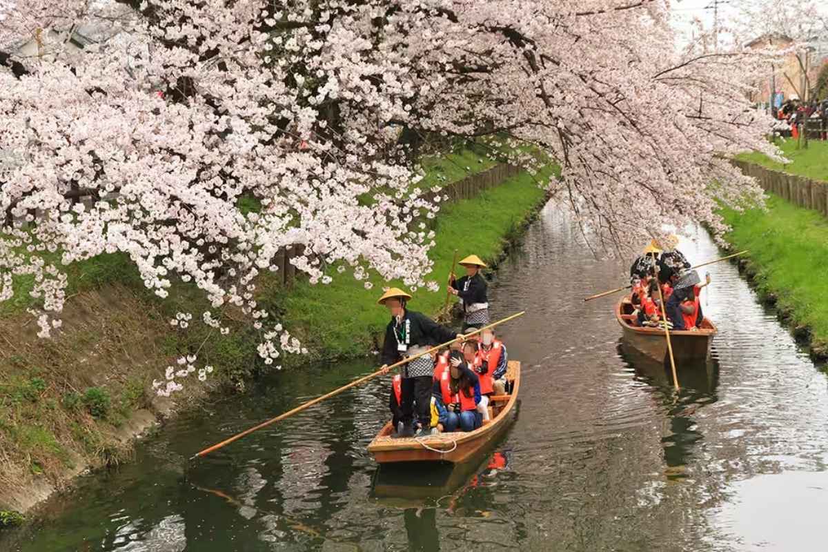 - ล่องเรือไม้ท่ามกลางอุโมงค์ซากุระ