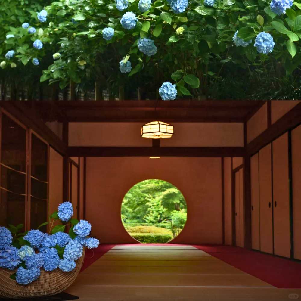 ความพิเศษที่ทำให้วัดแห่งนี้แตกต่างจากที่อื่น คือเฉดสีฟ้าอันเป็นเอกลักษณ์ที่เรียกกันว่า "Meigetsuin Blue" ดอกไฮเดรนเยียกว่า 2,500 ต้นที่นี่ ส่วนใหญ่เป็นสายพันธุ์ Hime Ajisai (ไฮเดรนเยียเจ้าหญิง) ซึ่งจะค่อยๆ เปลี่ยนจากสีขาวอมเขียว กลายเป็นสีฟ้าครามสดใสพร้อมๆ กันทั่วทั้งวัด สร้างทัศนียภาพที่ดูราวกับภาพวาดสีน้ำอันเงียบสงบ